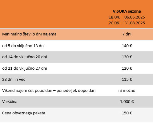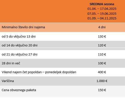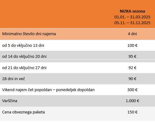 – v kolikor WC kaseta ni izpraznjena in očiščena, dodana tekočina za kemični WC, se zaračuna čiščenje kasete 100 €,